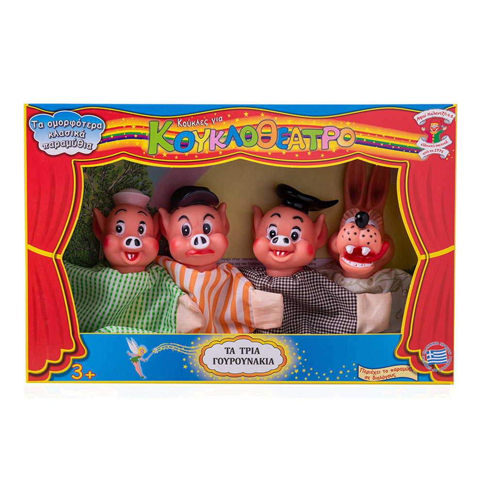 Οι γαντόκουκλες παραμυθιού τα τρία γουρουνάκια είναι ιδανικές για να βάλουν τους μικρούς μας φίλους στο πνεύμα των αγαπημένων τους παραμυθιών με έναν πολύ διασκεδαστικό τρόπο. Όλες οι γαντόκουκλες είναι Ελληνικής κατασκευής.