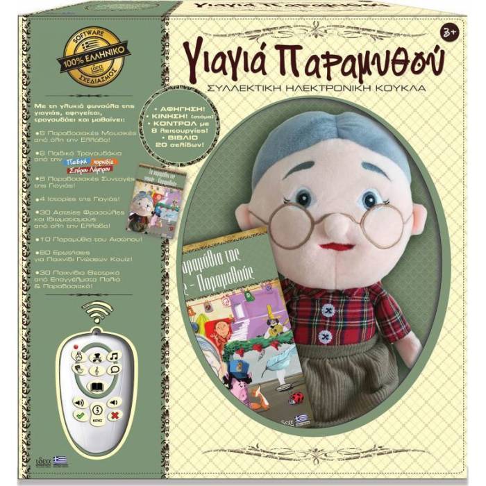 Η Γιαγιά Παραμυθού είναι η πρώτη, ηλεκτρονική κούκλα με θέμα τα παραμύθια και την Ελληνική Παράδοση. Κουνάει το στόμα της, μιλάει ελληνικά, παίζει, μαθαίνει, διδάσκει και λειτουργεί διαδραστικά με το παιδί σαν αληθινή γιαγιά! Διαθέτει βιβλιαράκι με 10 Παραμύθια του Αισώπου και Πρωτότυπη Εικονογράφηση καθώς και Ασύρματο τηλεχειριστήριο με 8 Διαφορετικές Εκπαιδευτικές Λειτουργίες: