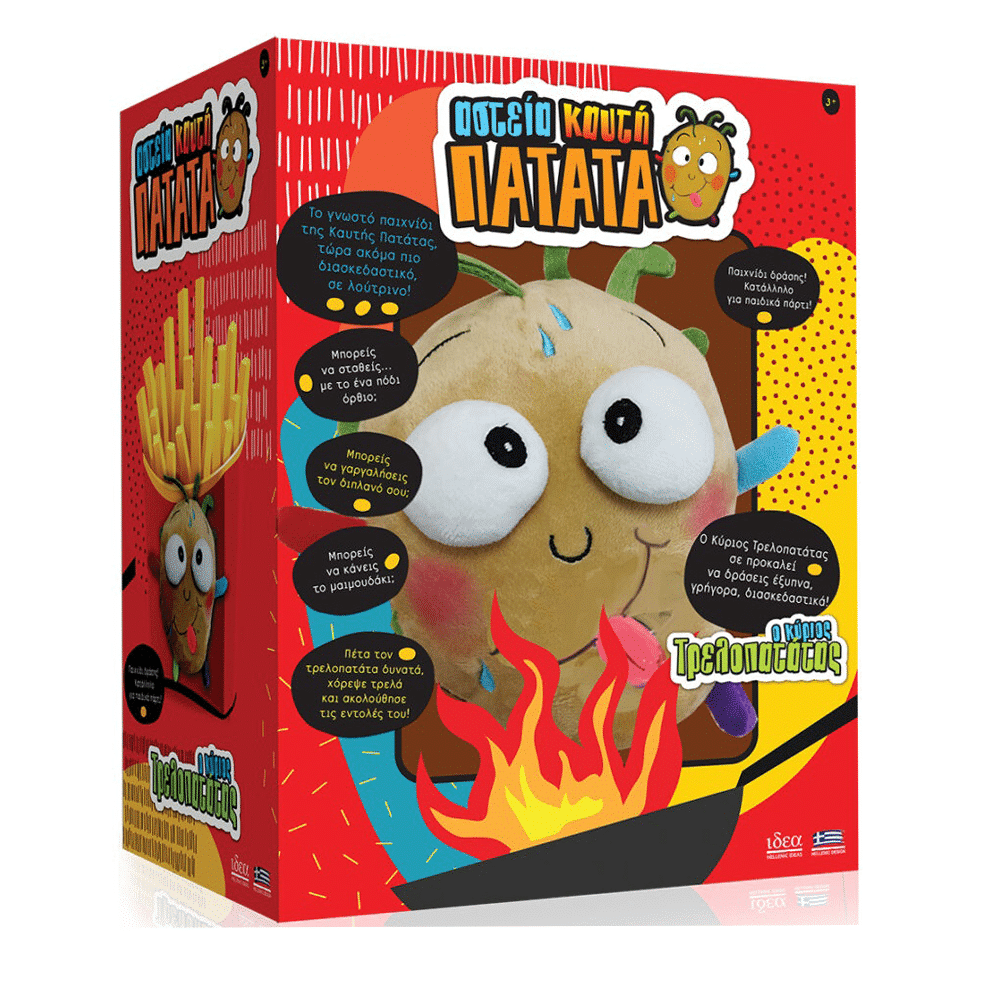 Παιχνίδι δράσης! Κατάλληλο για παιδικά πάρτι! Ο Κύριος Τρελοπατάτας σε προκαλεί να δράσεις έξυπνα, γρήγορα, διασκεδαστικά!Μπορείς να σταθείς με το ένα πόδι όρθιο; Μπορείς να γαργαλήσεις τον διπλανό σου; Μπορείς να πεις το όνομά σου, ανάποδα; Πέτα τον Τρελοπατάτα δυνατά, χόρεψε τρελά και ακολούθησε τις εντολές του! Το γνωστό παιχνίδι της Καυτής Πατάτας, τώρα ακόμα πιο διασκεδαστικό, σε λούτρινο! 100 διασκεδαστικές εντολές10 ξεσηκωτικές μουσικές Κωδικός κατασκευαστή14724 Barcode5206051147243 Ηλικιακή Ζώνη Κατασκευαστή Από 3 Ετών και πάνω Τεχνικά Χαρακτηριστικά Λειτουργεί με 2xΑΑΑ μπαταρίες που δεν περιλαμβάνονται