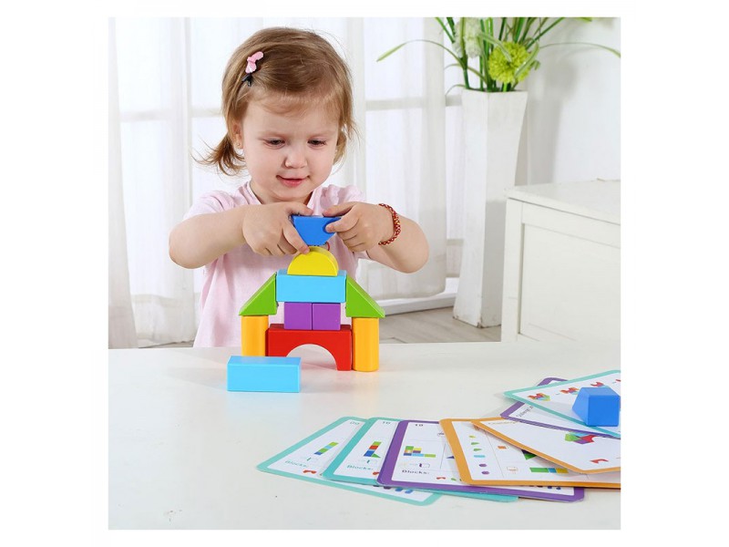 Αυτό το ξύλινο σετ αποτελείται από πολλά διαφορετικά τουβλάκια με διαφορετικά χρώματα και μεγέθη. Παρέχει τη δυνατότητα στο παιδί να κατασκευάσει όμορφους πύργους με τη βοήθεια ειδικών καρτών σε διάφορα μοτίβα και να εξασκήσει τις κινητικές του δεξιότητες και την ικανότητα της αντίληψης. Το παιχνίδι αποτελείται από 33 τεμάχια.