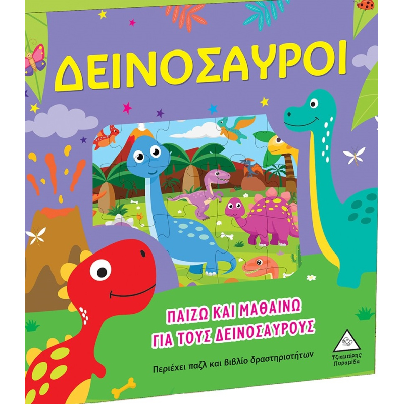 Παίζουμε και μαθαίνουμε για τους δεινόσαυρους μέσα από ένα βιβλίο με υπέροχες εικόνες κι ένα διασκεδαστικό και πολύχρωμο παζλ.