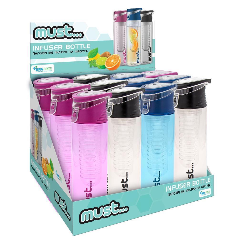 Το Must Παγούρι Πλαστικό με φίλτρο για φρούτα 700 ml διατίθεται σε 4 χρώματα (Μαύρο, Ροζ, Πράσινο, Μπλε) και είναι ιδανικό αξεσουάρ για το σχολείο, το γυμναστήριο και τις καθημερινές βόλτες.