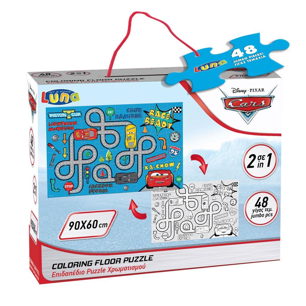 Το Παζλ Χρωματισμού Δαπέδου Disney Cars 2 Όψεων 48 Τμχ. και διαστάσεων 90×60 εκ. αποτελεί μια ιδανική επιλογή εκπαιδευτικού παιχνιδιού για τον ελεύθερο χρόνο των παιδιών στο σπίτι και στις διακοπές. Τα παιδιά κατασκευάζουν Επιδαπέδια Παζλ αγαπημένων ηρώων, τα ζωγραφίζουν και αναπτύσσουν με τον πιο εύκολο και διασκεδαστικό τρόπο κινητικές δεξιότητες, τη μνήμη και την δημιουργική φαντασία.