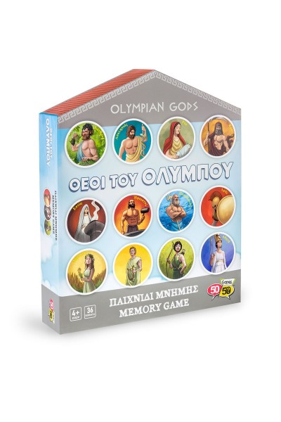 Νέο παιχνίδι μνήμης και παρατηρητικότητας εμπνευσμένο από την Ελληνική Μυθολογία. Τοποθέτησε τις στρογγυλές κάρτες που αναπαριστούν τους Ολύμπιους θεούς ανάποδα και προσπάθησε να βρεις και να ταιριάξεις τα όμοια ζευγάρια. Σχεδιασμένο από Έλληνες εικονογράφους και εκπαιδευτικούς με έναν πολύ διασκεδαστικό τρόπο, τα παιδιά καλλιεργούν την απεικονιστική μνήμη, τη συγκέντρωση και τις γνωστικές ικανότητές τους.