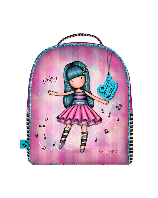 Σακίδιο βόλτας μίνι από τη νέα συλλογή Santoro Gorjuss Melodies 2021 με την νέα φιγούρα “Dancing Among the Stars”. Είναι κατασκευασμένο από αδιάβροχο ύφασμα και έχει υφασμάτινους ιμάντες. Το σακίδιο διαθέτει μία μεγάλη θήκη που κλείνει με φερμουάρ. Έχει ρυθμιζόμενους, υφασμάτινους ιμάντες, αλλά μπορεί να κρατηθεί και στο χέρι αφού διαθέτει χειρολαβή. Μπορεί να φορεθεί σαν τσαντάκι βόλτας ή τσαντάκι στο νηπιαγωγείο με την ίδια ευκολία.