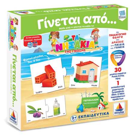 Από τι γίνεται το µέλι; Από πού βγαίνει το λάδι; Ένωσε τις εικόνες µεταξύ τους και µάθε από τι παράγονται τα προϊόντα που χρησιµοποιούµε καθηµερινά, στα ελληνικά και στα αγγλικά! Περιέχει και εκπαιδευτική χειροτεχνία, µε την οποία τα παιδιά ζωγραφίζοντας και δηµιουργώντας µαθαίνουν τα αντικείµενα του παιχνιδιού!