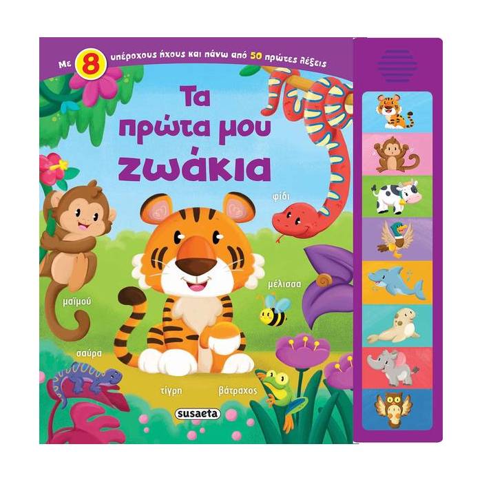 Γνώρισε τα ζωάκια και το περιβάλλον τους, και μάθε τις πρώτες σου λεξούλες με αυτά τα χαρούμενα βιβλία! Ύστερα πάτησε τα κουμπιά και άκουσε 8 φανταστικούς ήχους!
