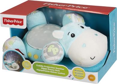 Fisher Price Μουσικός Προβολέας-Ιπποπόταμος (CGN86).Το μαλακό ιπποποταμάκι μπορεί να τοποθετηθεί σε ένα έπιπλο ή το κομοδίνο του μωρού για να βοηθήσει να γαληνέψει το μωρό και να κοιμηθεί. Το δωμάτιο γεμίζει με αστέρια και 30 λεπτά από χαλαρωτική μουσική, ήχους της φύσης ή μελωδίες!