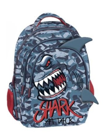 Σχολική τσάντα η οποία μπορεί να φορεθεί στην πλάτη, κατάλληλη για παιδιά δημοτικού της εταιρίας Graffiti με ανατομική πλάτη και θέμα Shark.