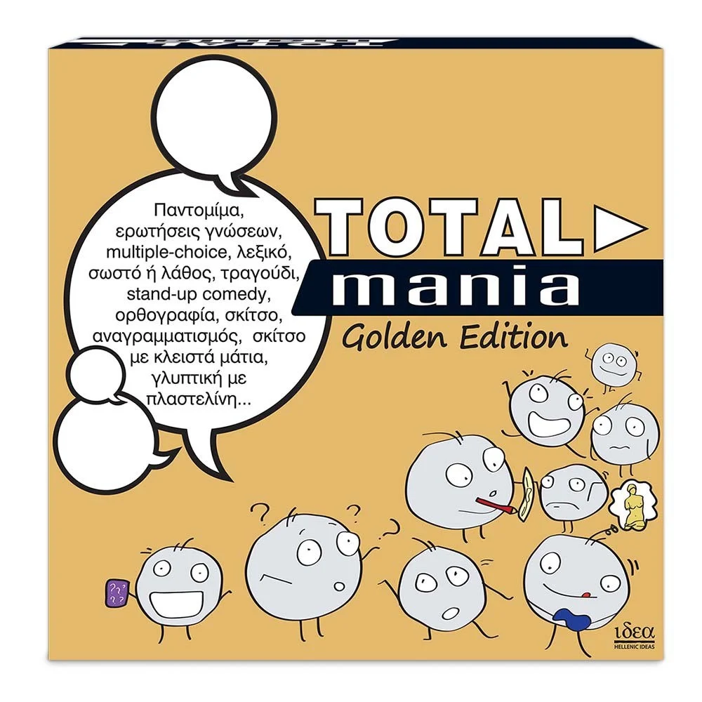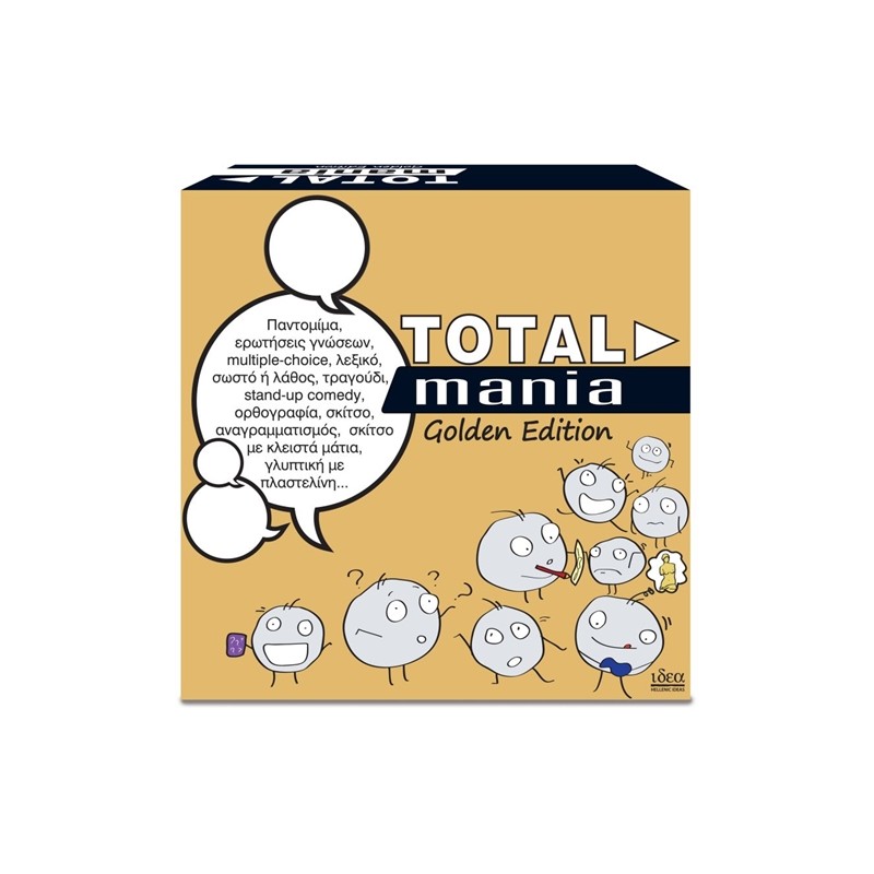 ο παιχνίδι που απαιτεί όλες σας τις δεξιότητες! Πρέπει να σκιτσάρετε, να μιμηθείτε, να τραγουδήσετε, να μαντέψετε τις λέξεις, να περιγράψετε, να κάνετε γλυπτική με πλαστελίνη, να παίξετε παντομίμα! Το TOTAL MANIA τα έχει όλα: γνώσεις, δράση και γέλιο. Είναι απίστευτο πόσα πράγματα μπορείτε να κάνετε εσείς αλλά και οι φίλοι σας!