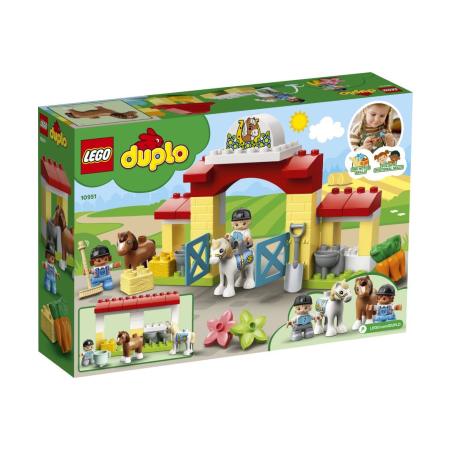 LEGO Duplo Στάβλος Αλόγων Και Φροντίδα Των Πόνυ (10951).Στο στάβλο με τα πόνυ, κάθε μέρα είναι γεμάτη διασκέδαση και παιχνίδι. Τα 2 χαριτωμένα πόνυ πρέπει να φάνε πριν βγουν για βόλτα. Και μετά θα πρέπει να πιουν νερό και να βουρτσιστούν. Μην ξεχάσεις να τους φτιάξεις μια άνετη γωνιά για ύπνο! Καθώς οι μικροί ζωόφιλοι φροντίζουν τα πόνυ στον εντυπωσιακό στάβλο, ενισχύουν την προσχολική τους ανάπτυξη, και ιδιαίτερα τις λεπτές κινητικές δεξιότητες και την κοινωνική και συναισθηματική αντίληψή τους.