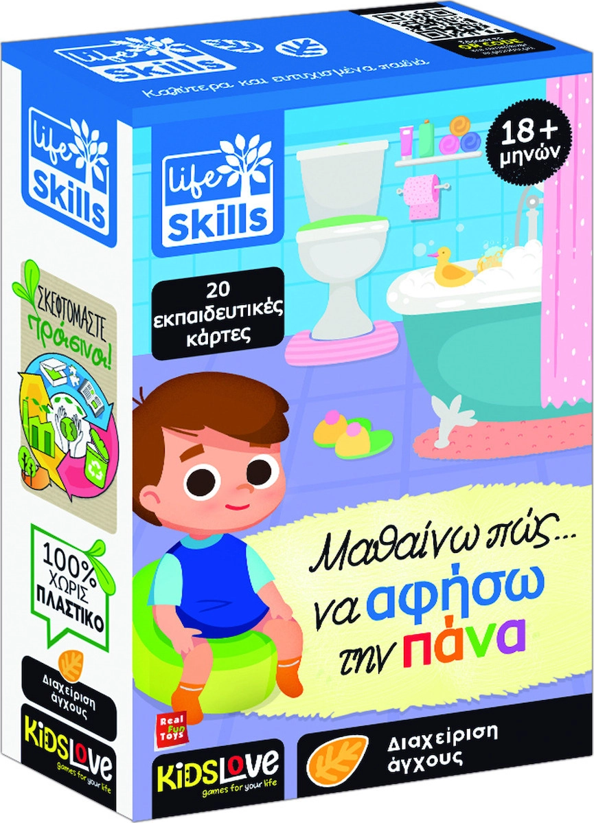 Η μετάβαση από τις πάνες στη λεκάνη της τουαλέτας, αντιπροσωπεύει ένα θεμελιώδες βήμα για τα παιδιά στην πορεία ανάπτυξής τους και στην κατάκτηση της αυτονομίας. Για αυτόν τον λόγο είναι σημαντικό οι γονείς να διαχειριστούν αυτή τη φάση με μέγιστη προσοχή. Αυτές οι κάρτες έχουν πολλές συμβουλές για να διευκολύνουν το μωρό να απομακρυνθεί από την πάνα. Με αυτό το παιχνίδι το παιδί αναπτύσσει την ικανότητα να διαχειρίζεται το άγχος, μια από τις δεξιότητες ζωής που προσδιορίζονται από τον Π.Ο.Υ.
