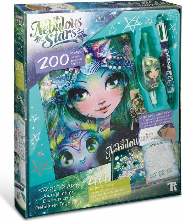 Nebulous Stars Secret Diary-Marinia (11115).Όλοι έχουν τα μικρά μυστικά τους! Τα Nebulous Stars θα ακούσουν όλα τα μυστικά σου, ενώ μοιράζεσαι τις σκεψείς και τις δραστηριότητές σου μέσα από αυτό το μυστικό ημερολόγιο. Συνοδεύεται από στιλό-απλικατέρ.Tο μυστικό ημερολόγιο της Marinia είναι ένα βιβλίο δραστηριοτήτων 200 σελίδων από τη Nebulous Stars.Το σετ περιλαμβάνει ένα ημερολόγιο με κλειδαριά και κλειδιά, στιλό 6 χρωμάτων και ένα απλικατέρ για να διακοσμήσεις τις σελίδες σου. Το ημερολόγιο έχει 44 σελίδες με διασκεδαστικές δραστηριότητες, μια σελίδα με αυτοκόλλητα, 150 σελίδες με γραμμές και ολόκληρη την ιστορία της Marinia.Scribble-by-number.Ζωγράφισε τα σχήματα χρησιμοποιώντας το χρώμα που σχετίζεται με τον αριθμό.Βρες τις 10 διαφορές.Dot-to-Dot.Ένωσε τις τελείες στη δεξιά πλευρά για να δημιουργήσεις μια εικόνα. Βεβαίωσε ότι χρησιμοποιείς το σωστό χρώμα για κάθε ομάδα αριθμών.Ολοκλήρωσε την εικόνα με βάση την συμμετρία.Παιχνίδι Λέξεων.1. Συμπλήρωσε το κενό με το απλικατέρ. 2. Γράψε τα ταιριαστά γράμματα κάτων από κάθε εικόνα. 3. Προσπάθησε να δημιουργήσεις όσο περισσότερες λέξεις μπορείς! Κατασκευή Mandala.Ολοκλήρωσε το mandala και πρόσθεσε τα αγαπημένα σου χρώματα.Βοήθησε την Aura να βρεί την καλύτερή της φίλη, Isadora.Zentangle.Ολοκλήρωσε την εικόνα γεμίζοντας το κάθε σχήμα με μοτίβα.Φτιάξε το δικό σου κόμικ.Συνιστάται η χρήση για παιδιά από 7 χρονών και άνω.