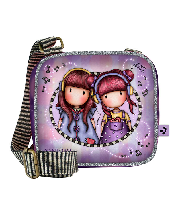 Τσαντάκι ώμου από τη νέα συλλογή Santoro Gorjuss Melodies 2021 με την νέα φιγούρα “The Duet”. Κλείνει με φερμουάρ, διαθέτει μια κεντρική θήκη και μια μικρότερη μέσα που κλείνει επίσης με φερμουάρ. Το εσωτερικό του είναι επενδυμένο με ριγέ ύφασμα και διαθέτει ρυθμιζόμενο, αποσπώμενο ιμάντα από δερματίνη.